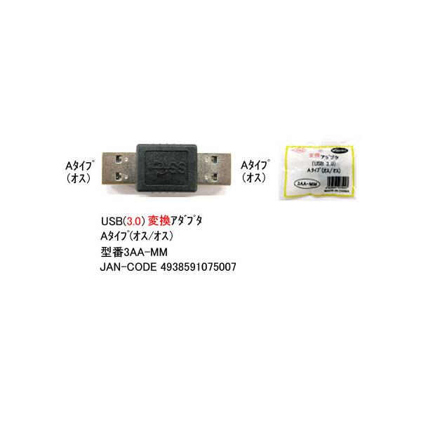 USB 3.0 両端Aタイプ オス アダプタ [カモン 3AA-MM]