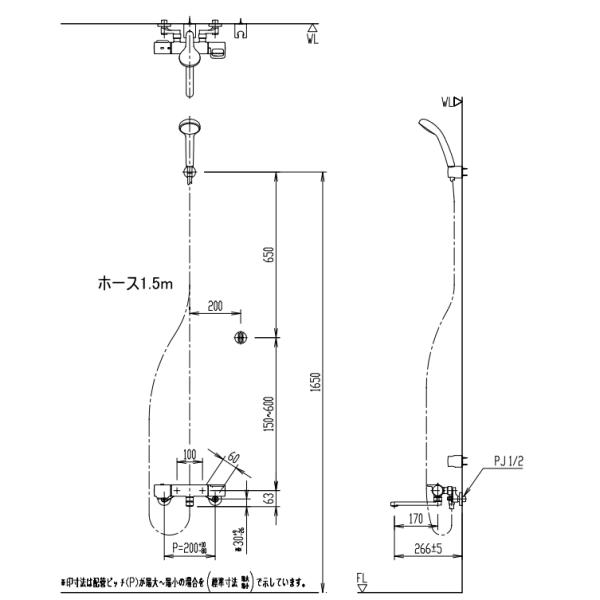 BF-KA145TSG サーモスタット付シャワーバス水栓 LIXIL・INAX(リクシル・イナックス) 浴槽・洗い場兼用タイプ