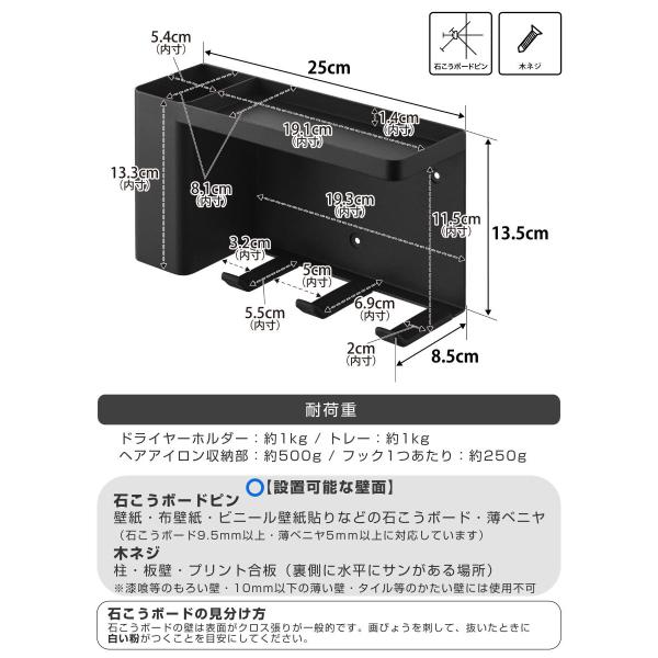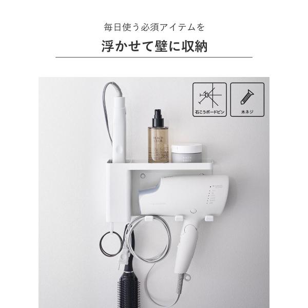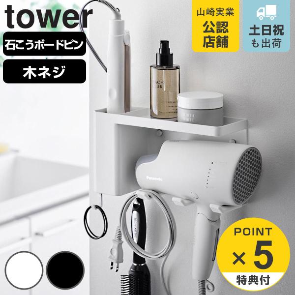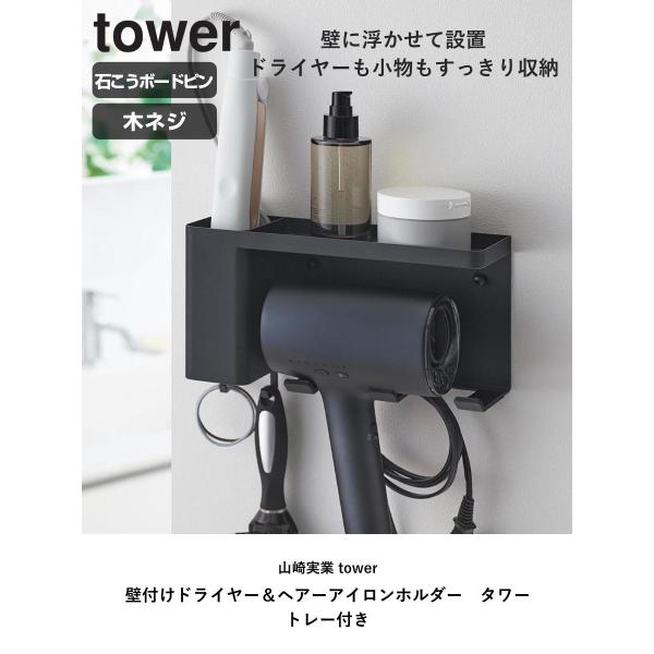 特典付き 山崎実業 tower 壁付けドライヤー&ヘアーアイロンホルダー タワー トレー付き ( 4903208102544 タワーシリーズ ドライヤーホルダー 洗面所 )