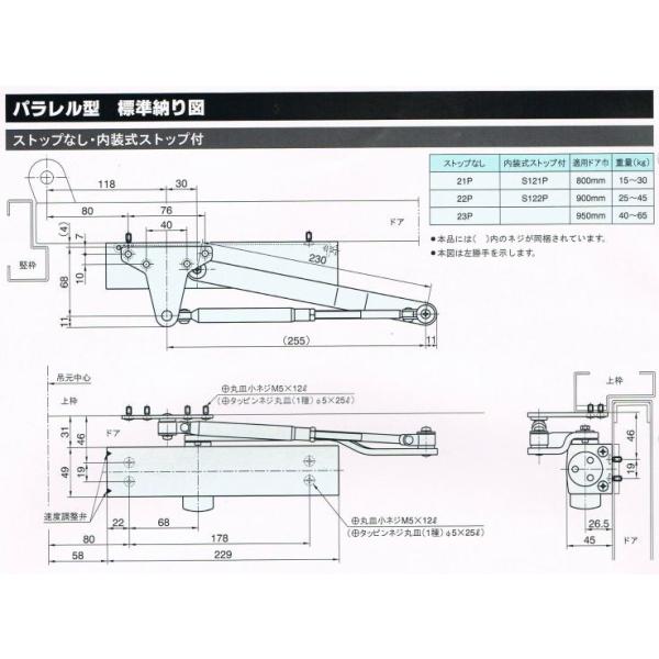リョービ ドアクローザー S122P C1 ブロンズ色(パラレル型・内装式ストップ付)木製・アルミドア用ドアクローザー