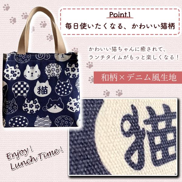 ランチバッグ 保冷 ネコ 猫柄 お弁当袋 トートバッグ ねこ おしゃれ 和柄 デニム風生地 かわいい 弁当袋