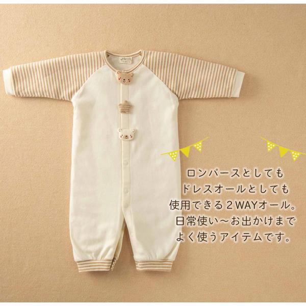 新生児 赤ちゃん ツーウェイオール オーガニックコットン100% 男の子 女の子 カバーオール 0歳 1歳 ベビー服 兼用ドレス 動物 どうぶつ 出産祝い 孫 0歳 日本製