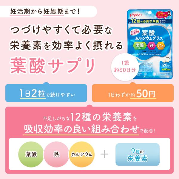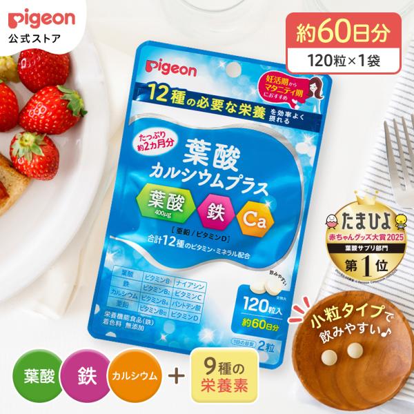 公式 葉酸カルシウムプラス 120粒 葉酸サプリ サプリ 鉄分 カルシウム ビタミン 亜鉛 無添加 サプリメント 葉酸 鉄 ピジョン pigeon