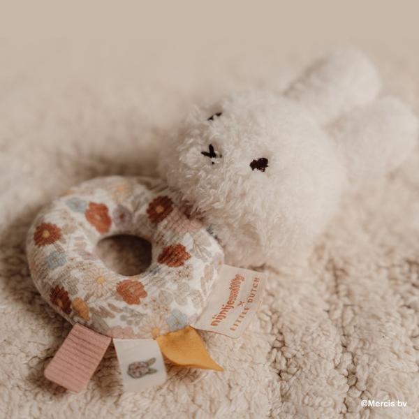 リトルダッチ ミッフィー ベビーラトル ヴィンテージリトルフラワー ストライプ柄 がらがら 赤ちゃんのおもちゃ miffy x Little Dutch