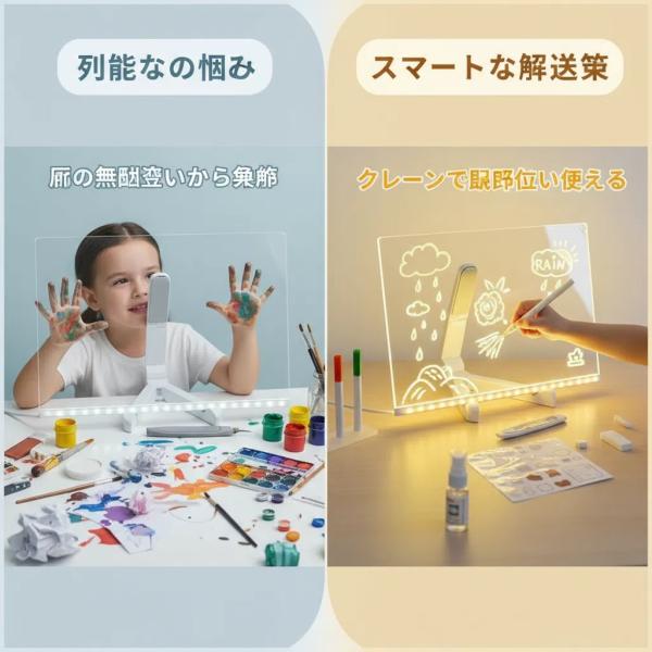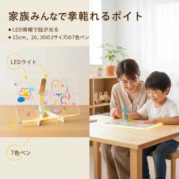 LED お絵描きボード ノートボード 光る アクリルメッセージボード カラー付きLED製お絵かきボード 7色のペン付き スタンド付き 繰り返し書