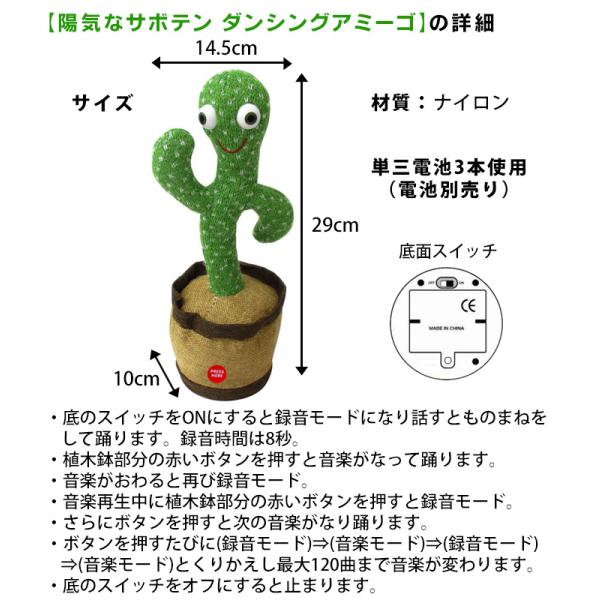 ダンシングアミーゴ しゃべる サボテン 音楽がなって楽しい まねっこ 踊る 光る ダンス 真似する ものまね ぬいぐるみ 声 おしゃべり おもちゃ プレゼント