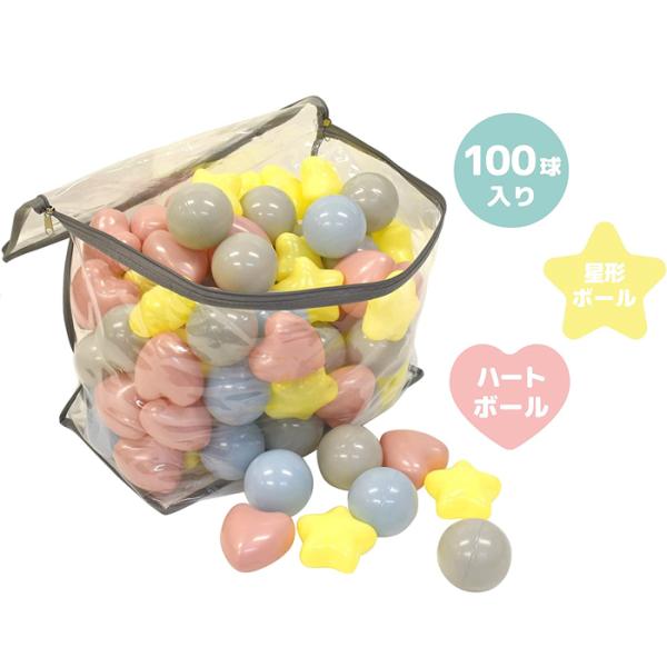 カラーボール カラフルボール 星&ハート 100球 パステルカラー ボールプール用 補充用 追加ボール ボールハウス用 パステル 星型 星 ハート型 ハート【永和】