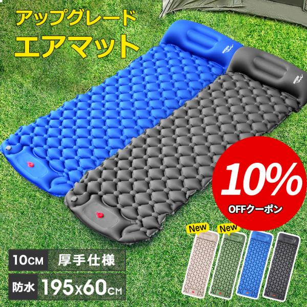 エアーマット キャンプ 車中泊 足踏み式 キャンプマット 厚手 10CM 軽量 コンパクト 防水 キャンプ用品 持ち運び 収納袋付 枕付き マットレス アウトドア用 爆買