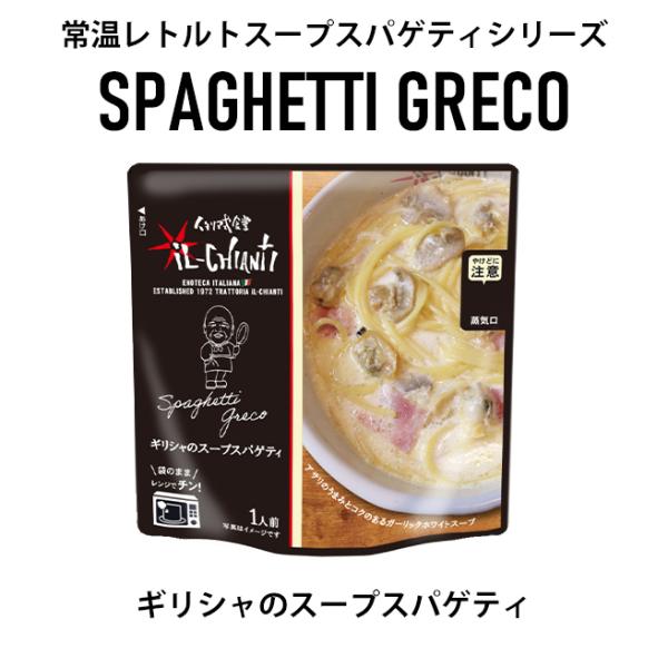イルキャンティ ギリシャのスープスパゲティ レトルトパスタソース 250g アサリ入りガーリックホワイトスープ仕立て 電子レンジ調理 常温配送 お取り寄せ グルメ
