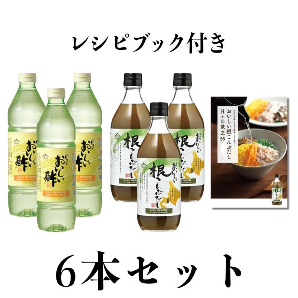 12/31まで販売 おいしい酢 955ml×3本 おいしい根こんぶだし 500ml×3本 レシピブック付き 日本自然発酵 計7点 だしBセット 酢 調味料 だし
