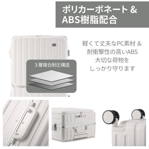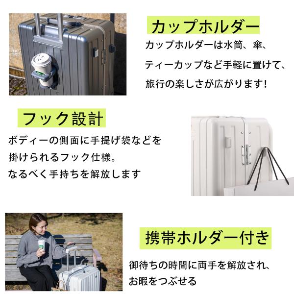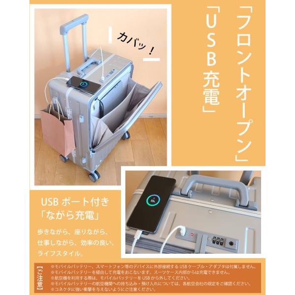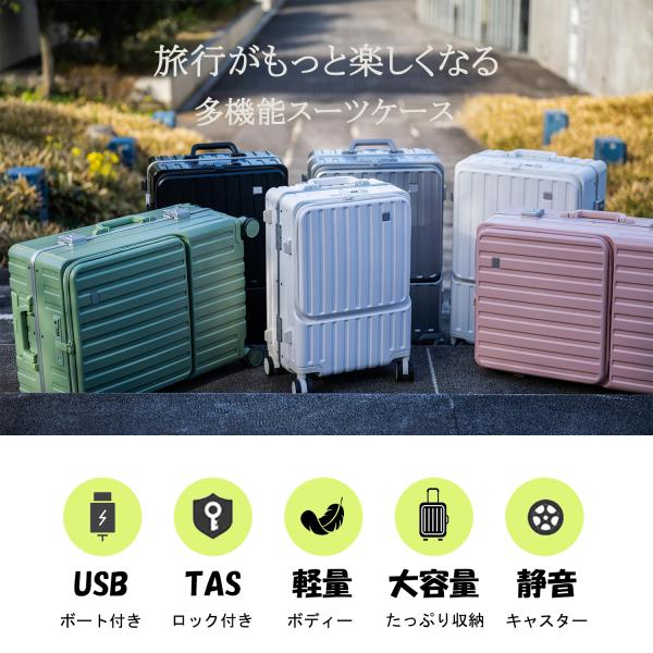 【在庫一掃価格】スーツケース Mサイズ USBポート付き カップボルダーフロントオープン キャリーケース 多収納ポケットTSAロック付 3〜7泊 RIOU