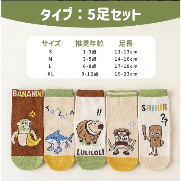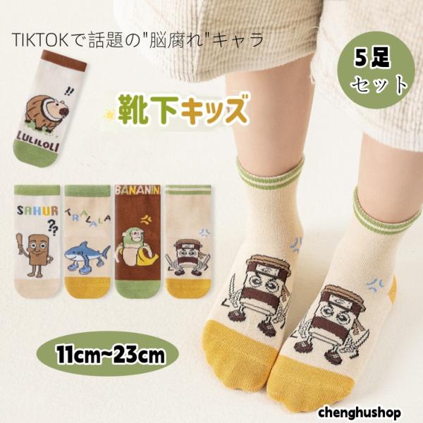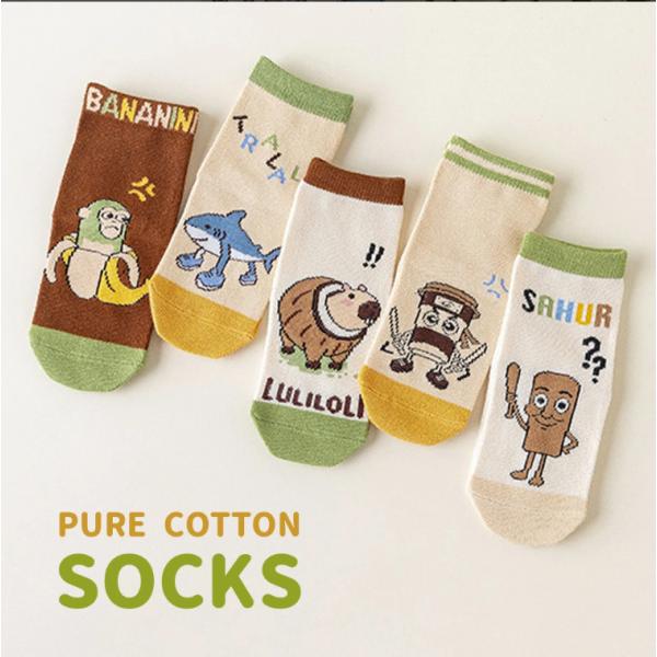 イタリアンブレインロット靴下 5ペア Italian brainrot トゥントゥントゥンサフール TungTungTungSahur 子供 Tralalelo Tralala グッズ 5足セット(5足組) 通気
