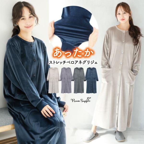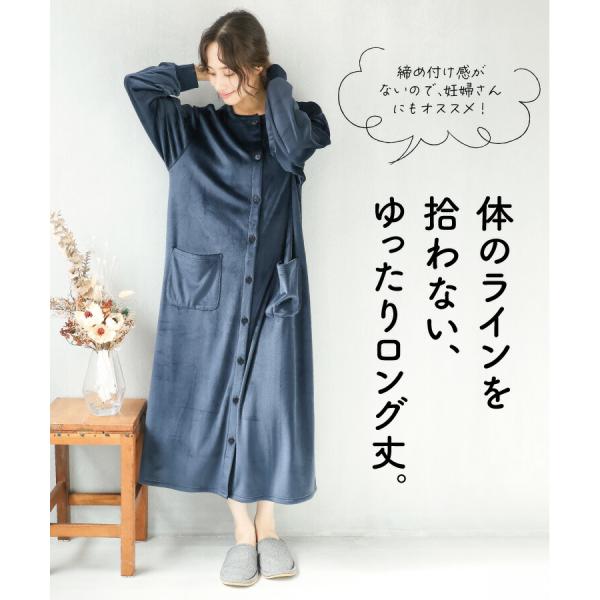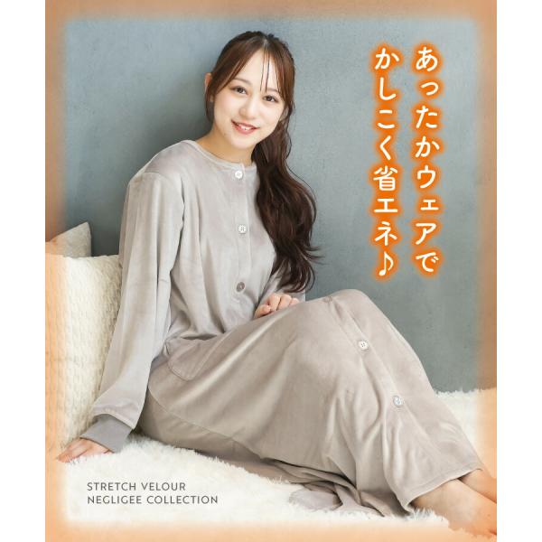 レディース パジャマ ワンピース 長袖 冬 冬用 暖かい もこもこ ルームウェア 部屋着 ストレッチベロア リブ マタニティ 産前 産後 大きいサイズ w2-77515 佐川