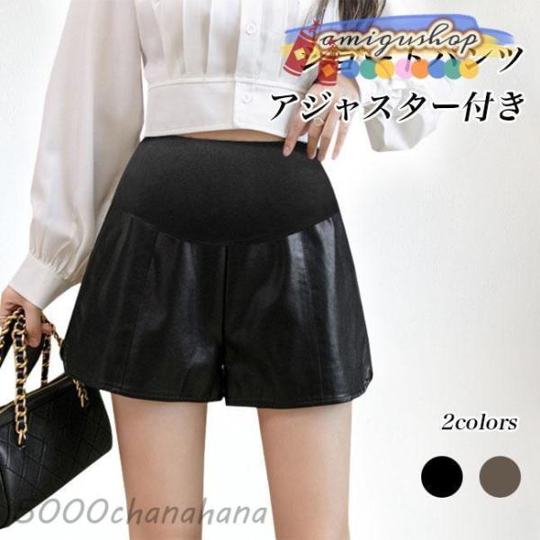 マタニティ ショートパンツ PUレザー 妊婦 PUパンツ ショート丈 ワイドパンツ レディース 短パン 春秋 冬 マタニティパンツ アジャスター付き 産後