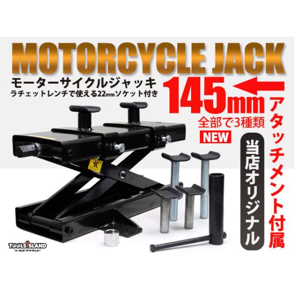 バイクリフト バイクジャッキ モーターサイクルジャッキ ブラック 500kg ロングアダプター コンパクト ジャッキ バイクスタンド メンテナンススタンド