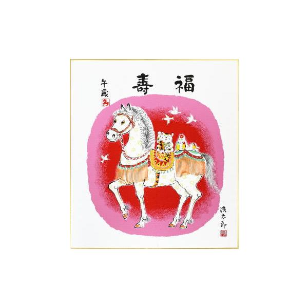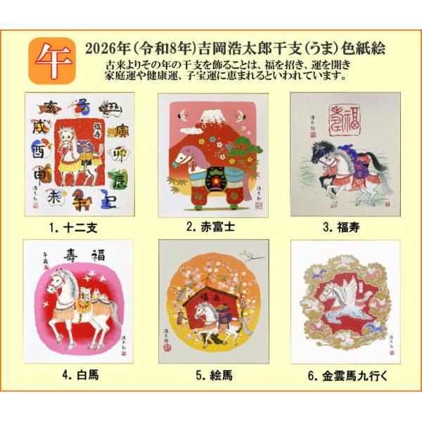 2026年・令和8年の干支色紙 メール便なら送料無料 干支(午年・馬)色紙 4.白馬 吉岡浩太郎