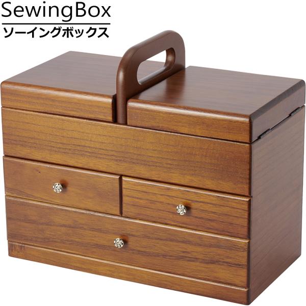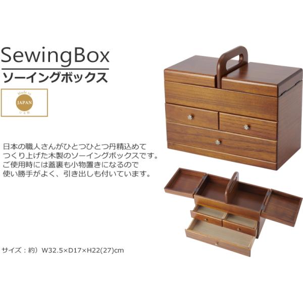 裁縫箱 木製 ソーイングボックス 引き出し 持ち運び 仕切り 裁縫道具箱 日本製 W32.5×D17×H22(27)cm