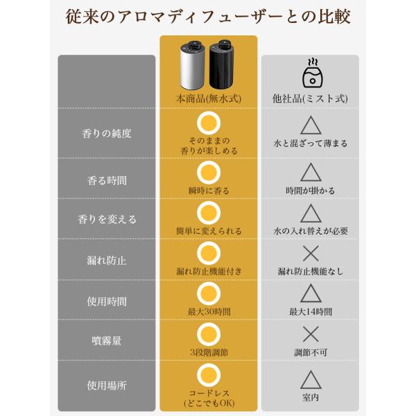 \クーポンで最安3222円/ アロマディフューザー 水なし コードレス 車 2000mAh 噴霧式 ディフューザー アロマ 充電式 静音 ネブライザー 3段階調整 漏れ防止