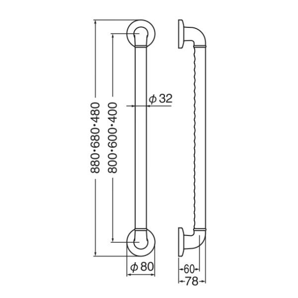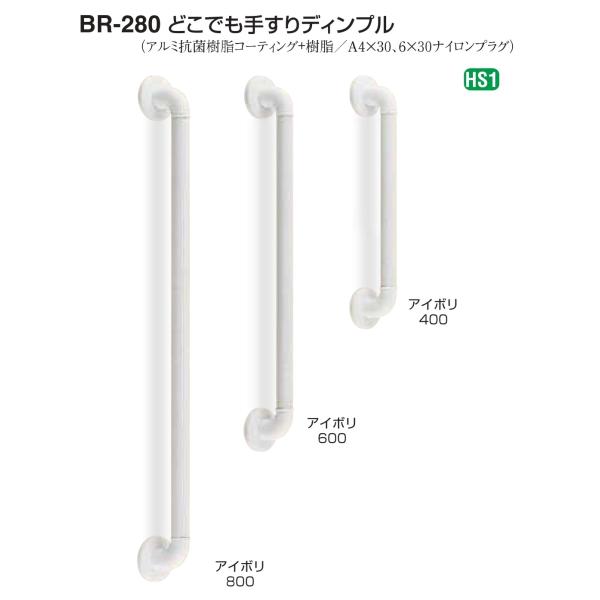 シロクマ SHIROKUMA BR-280 どこでも手すりディンプル アイボリ サイズ400-800 アルミ抗菌樹脂コーティング 1本 32Φ バリアフリー 介護 抗菌 直送