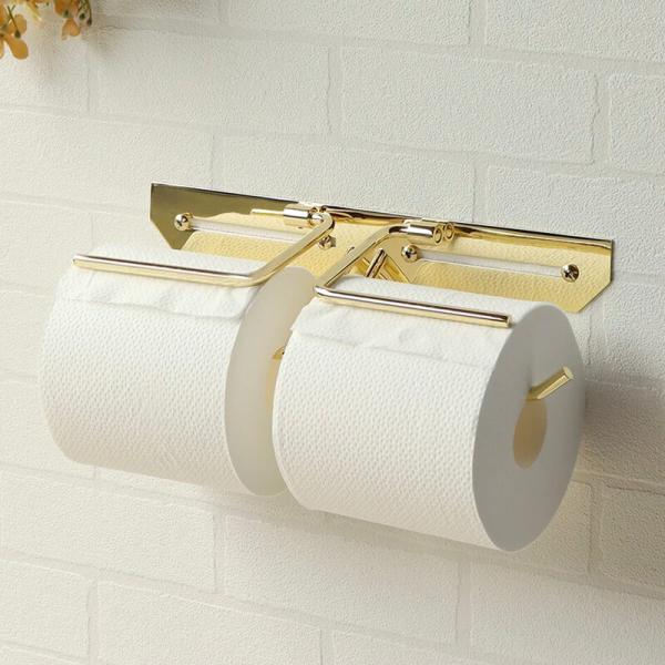 真鍮 トイレットペーパーホルダー トイレットペーパーホルダーカバー 2連 ゴールド おしゃれ 北欧 金 DIY 差し込むだけ 賃貸 穴あけ不要