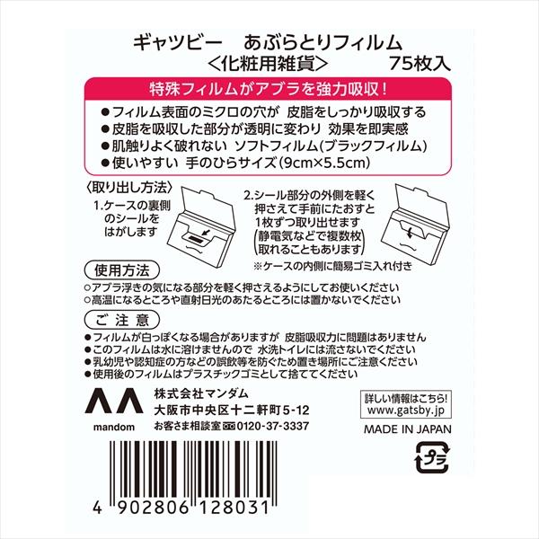 【3個セット】ギャツビー あぶらとりフィルム フェイシャルペーパー あぶらとり紙 マンダム 皮脂吸収 肌をこすらずケア