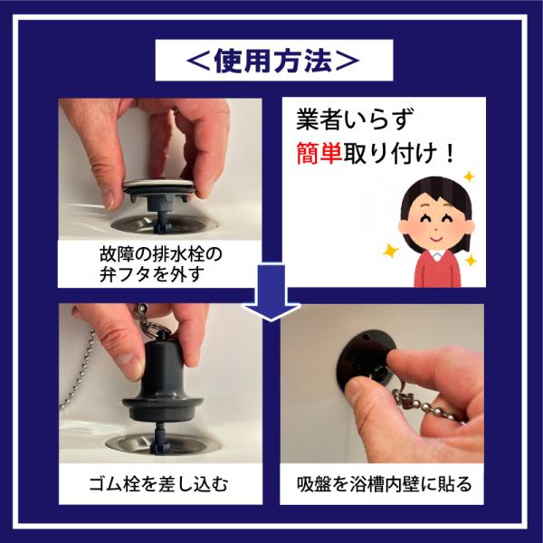 お風呂のゴム栓 ワンプッシュ排水栓 代替用 浴槽排水口 かんたん取り付け 日本製 LBM0006