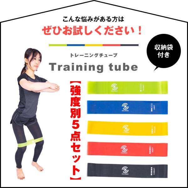 トレーニングチューブ エクササイズバンド 5本セット強度別 ゴムチューブ ダイエット ヨガ ストレッチ 体幹 筋トレ レジスタンスバンド