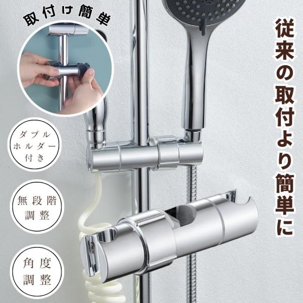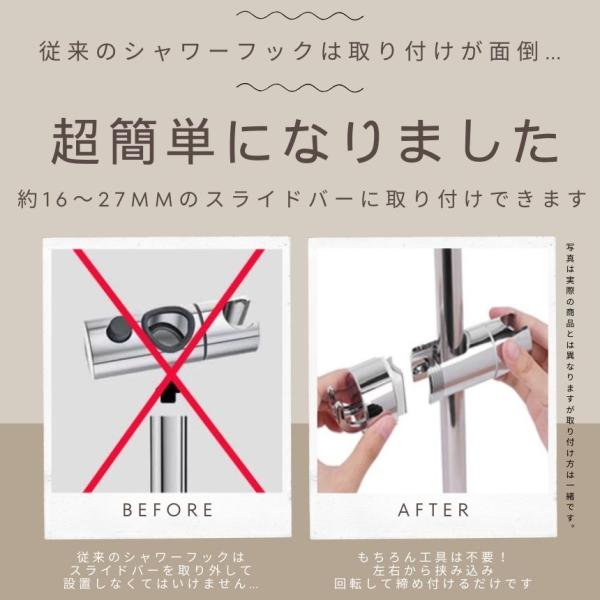 シャワーフック シャワーヘッドホルダー シャワーホルダー スライド シャワー フック スライドバー ラック シャワーヘッド ホルダー 交換用 穴あけ不要