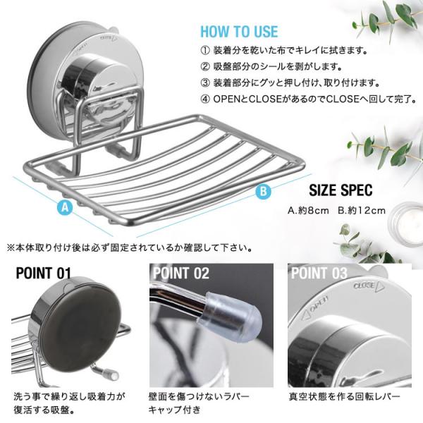 石鹸置き せっけん皿 ソープラック ソープディッシュ ソープトレイ バスルーム 強力吸盤 強力吸着 ラック 吸盤ラック SG-192