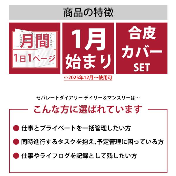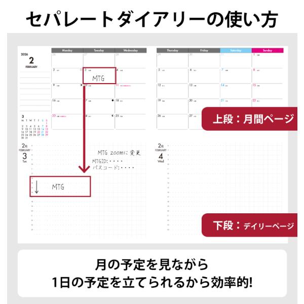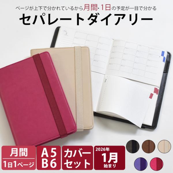 手帳 セパレートダイアリー 2026 1月始まり カバーセット A5 B6 デイリー&マンスリー 合皮 バンド付 スケジュール帳
