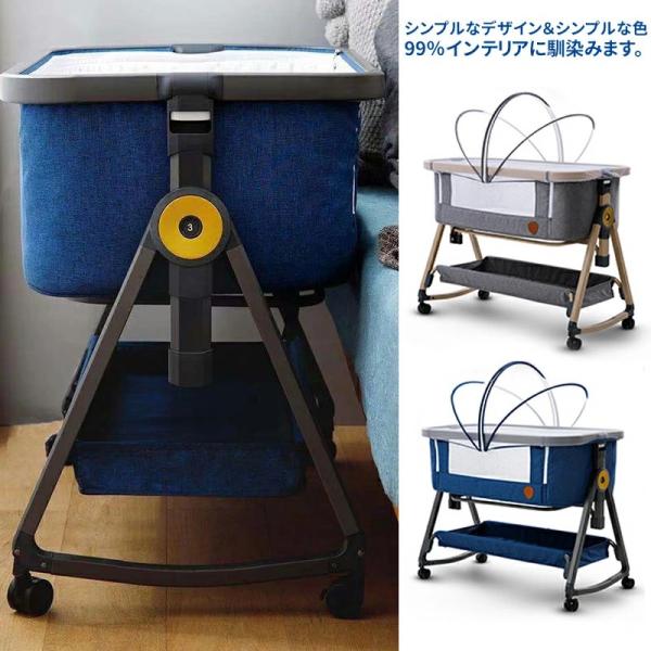 HZDMJ ベビーベッド 赤ちゃん 折りたたみ 添い寝ベッド 揺りかご 高さ調節 キャスター付き ストッパー 大容量 蚊帳 マットレス付き 新生児 0-36ヶ月 出産祝い