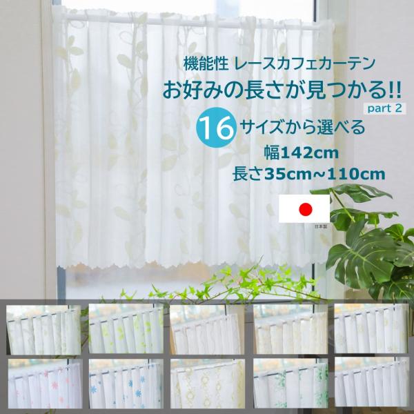 16 サイズ から 長さ 選べる 幅142cm 小窓用 カフェカーテン 機能性レース 日本製 UVカット 遮熱 保温 省エネ 目隠し 昼夜見えにくい ウォッシャブル