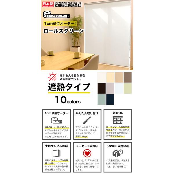 ロールスクリーン 遮熱 オーダー ロールカーテン 採光 非遮光 賃貸 おしゃれ 目隠し 間仕切り 階段 断熱 節電 日本製 タチカワブラインドグループ 立川機工