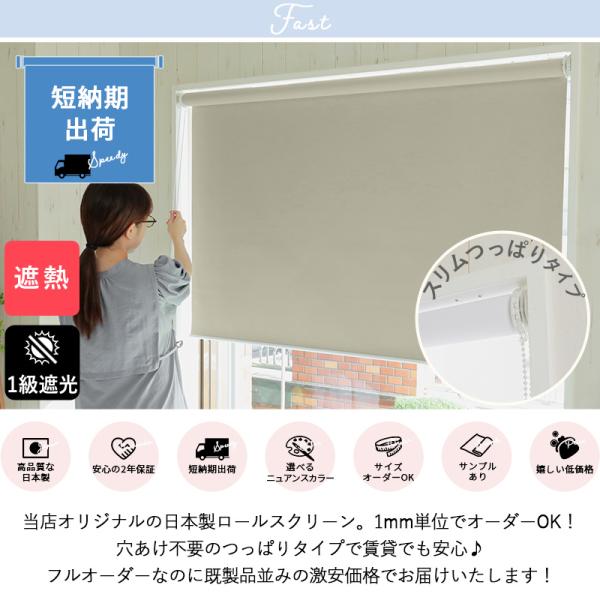 ロールスクリーン ロールカーテン スリム突っ張り式 遮光1級 遮熱 オーダーメイド おしゃれ 北欧 賃貸 日本製 / ファスト 一級遮光 スリムつっぱり式