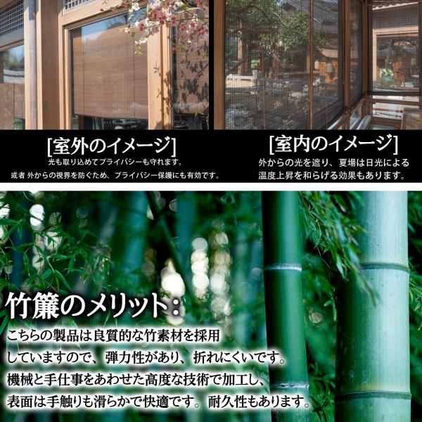 竹すだれ 竹簾 竹製スクリーン 室内専用 遮光率90% 天然竹 ロールアップ式 巻き上げ 目隠し 遮光遮熱 日除け 日よけ防止 風通し 和風 和室 茶室