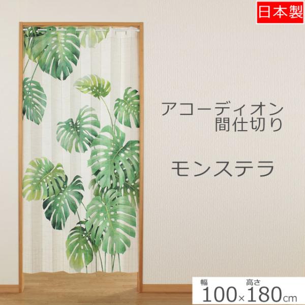 アコーディオン間仕切り モンステラ 100×180 グリーン 14-634