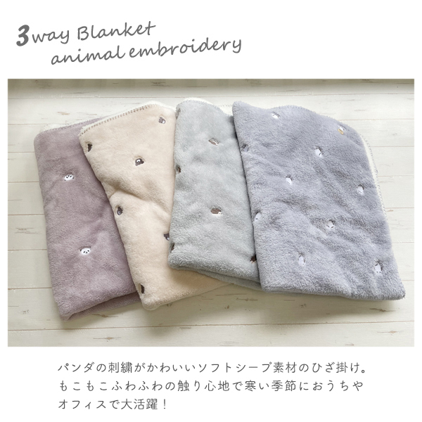 ブランケット ひざ掛け おしゃれ パンダ 暖かい ベビーカー 可愛い もこもこ 3way 70×100cm 刺繍 パンダ 冬 プレゼント ゆうパケット不可