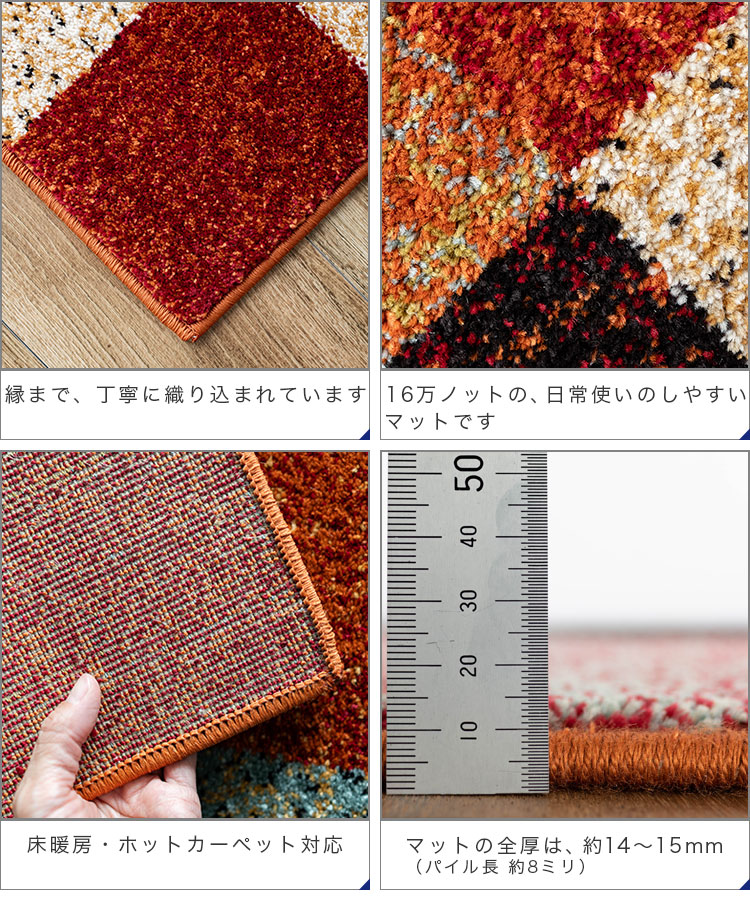 玄関マット パッチワーク 柄 50×80 おしゃれ 北欧 風 室内 屋内 トルコ絨毯 ミッドセンチュリー