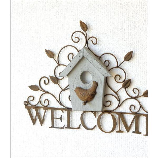 ウェルカムボード 壁掛け おしゃれ 小鳥 吊り下げ 置物 玄関 ガーデン アンティーク 雑貨 Welcome かわいい ウェルカムウッドバードハウス