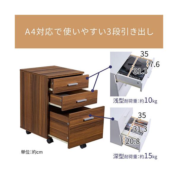 デスクワゴン サイドワゴン キャスター付き デスク下 サイドチェスト 木製 在宅勤務 A4サイズ 収納 キャビネット 整理整頓 新生活 引き出し シンプル