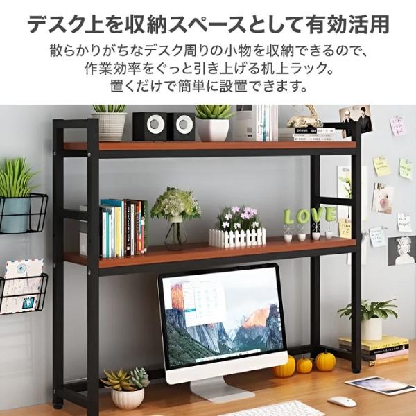 机上ラック 卓上ラック デスク上 収納ラック 机 2段 モニター台 木製天板 75 95 115 高さ調節 収納棚 卓上収納 棚 おしゃれ 机上 収納 本棚 デスク パソコン台