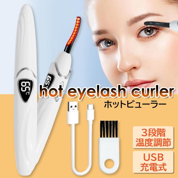 ホットビューラー まつげカーラー アイラッシュカーラー 三段階温度 温熱 火傷防止 ホットカーラー まつげパーマ ホワイト ((S