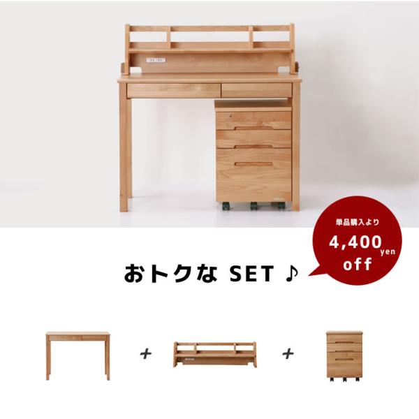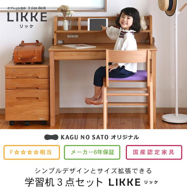 【期間限定値下げセール実施中!11/27 9:59まで】奥行きサイズを拡張できる 学習机 ・ 学習デスク 3点セット 100cm幅(デスク+上棚+ワゴン) LIKKE(リッケ) デ