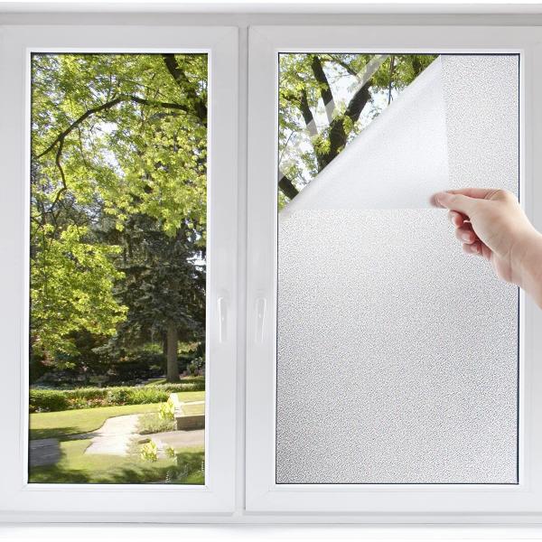 窓用フィルム 目隠しシート プライバシー保護 ガラス飛散防止シート 断熱フィルム UVカット 貼り直し可能 すりガラス調 ( 薄白 90cm*200cm)