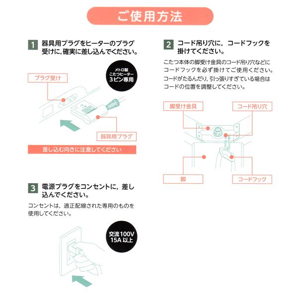 こたつコード 3m BC-KE21D(A) 交換用 METRO メトロ電気工業 メトロ製こたつヒーター 3ピン専用 コントローラー無段階温度調節 BCKE21DA