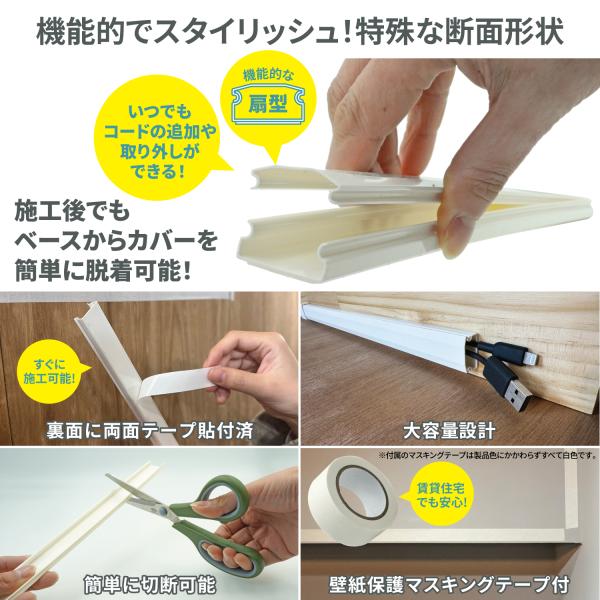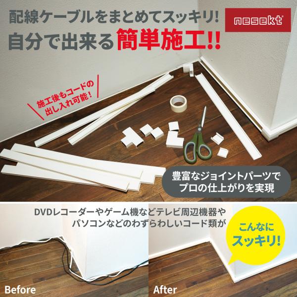 [ネセクト] 配線カバーセット 40cm 直線モール12本(4.8m) ジョイントパーツ30個 壁紙保護用マスキングテープ付属[日本企画1年保証]