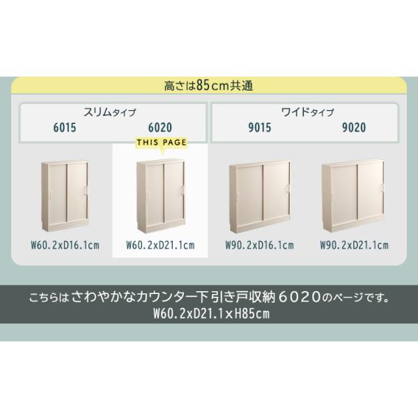 キッチン収納 リビングラック キッチンカウンター カウンター下収納 キャビネット 食器棚 収納棚 薄型 おしゃれ 幅60cm キッチンカウンター下 引き戸収納6020