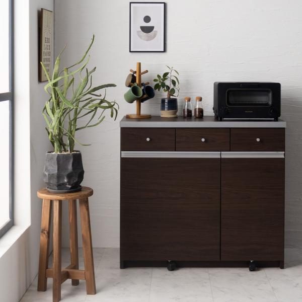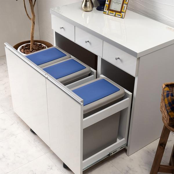 日本製 完成品 ペール3個付き キッチン収納 幅90cm キッチンカウンター ダスト収納 ゴミ箱収納 コンセント付き 台所 木製 おしゃれ ダストカウンター ワルツ90
