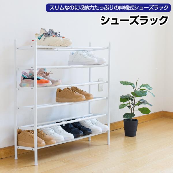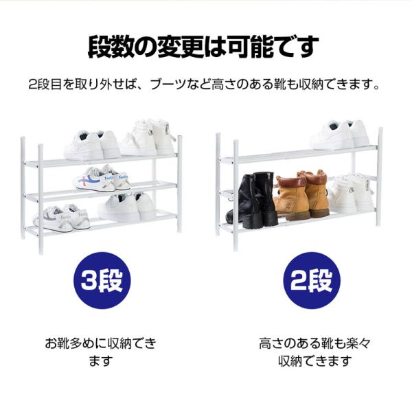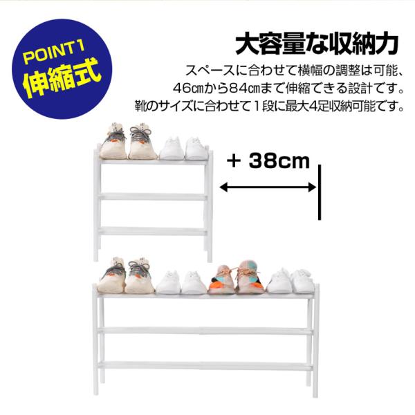 シューズラック 伸縮 省スペース 3段 靴棚 下駄箱 組み立て式 オープンラック 収納ラック ホワイト