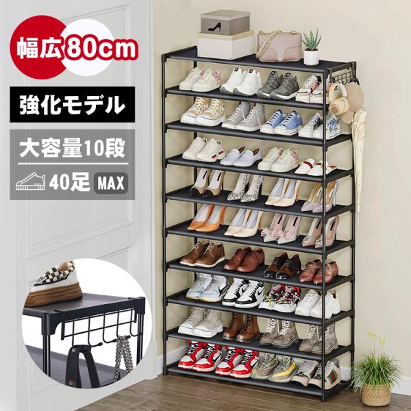 2025補強タイプ!シューズラック 5段 10段 幅80cm 安定感アップ フック付き 多層収納 従来品より補強されたシューズラック 大容量 靴箱 下駄箱 組立簡単